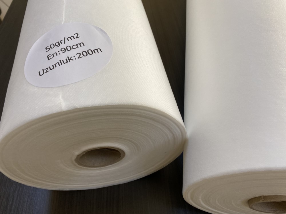 Thermobond and cehemicalbond systems are operated continuously in the machine, and 50gr/m² fillet interlining is obtained by coating 40 gr/m² thermobond surface with 10 gr/m² chemical on both surfaces of the interlining equally.